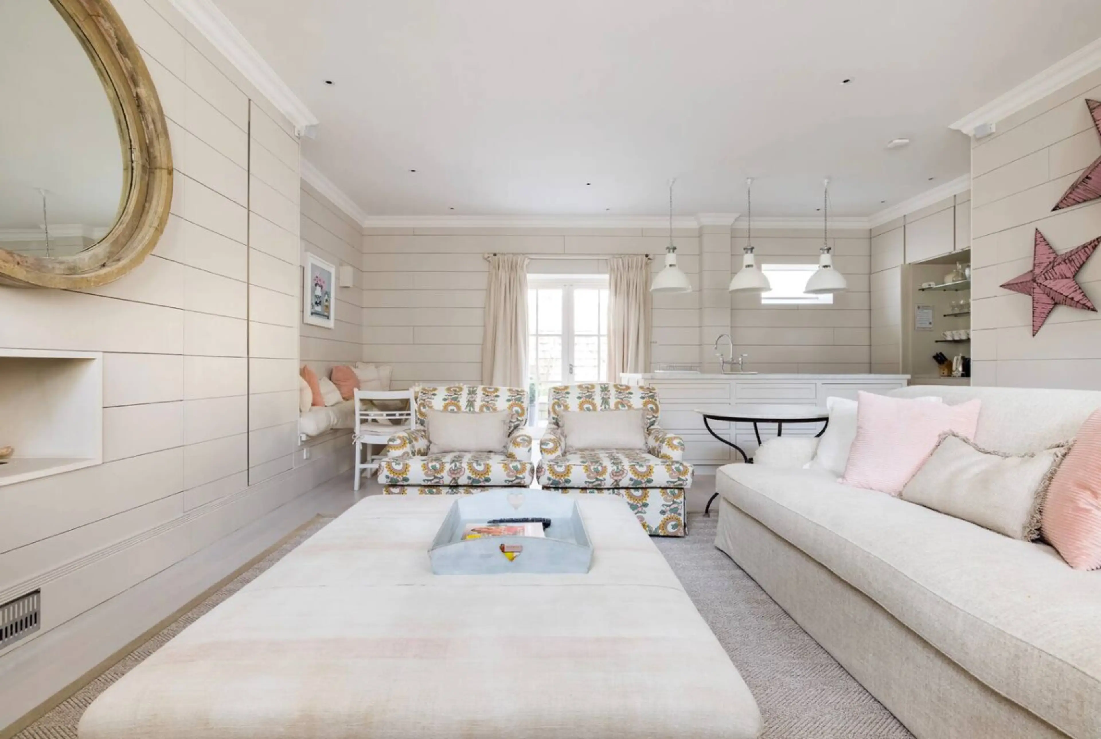 Sit back in a classic armchair as you soak in the charm of this home within its wood paneled walls, white-washed wood floors, and open-plan arrangement. Prep a meal under sleek bell pendant lamps that illuminate the marble countertops of the kitchen. As soon as you enter this three-bed, two storey m...